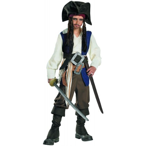 -. Binding : Toy -. Brand : Disguise Costumes -. ClothingSize : One Size -. Color : multi-colored -. Department : boys -. Feature : Shirt with attached vest and sash with two belts with attached buckles / Pants and boot covers / Bandana with attached hair and hat / Toy weapon sold separately / Official Disney Licensed Costume -. Label : Disguise -. Manufacturer : Disguise -. Model : 5042K-I-P -. MPN : DI5042 -. PackageQuantity : 1 -. PartNumber : DI5042 -. ProductGroup : Toy -. ProductTypeName : CHILDRENS_COSTUME -. Publisher : Disguise -. Size : One Size -. Studio : Disguise -. Title : Disguise Disney Pirates of The Caribbean Captain Jack Sparrow Child Boys Costume