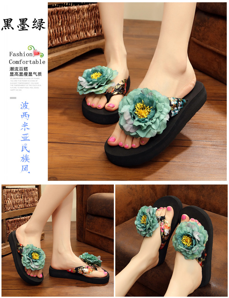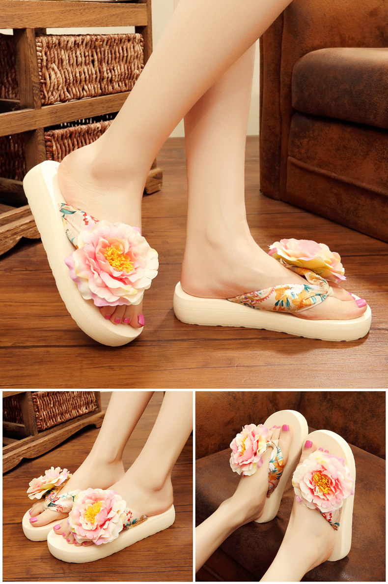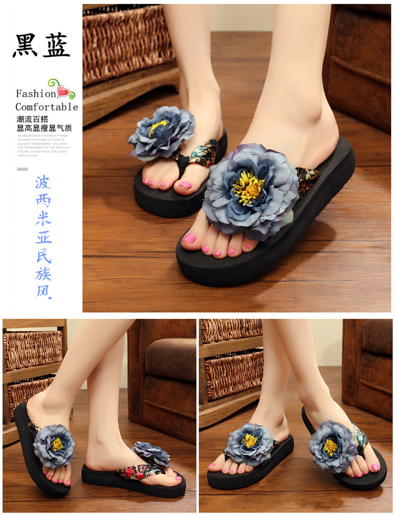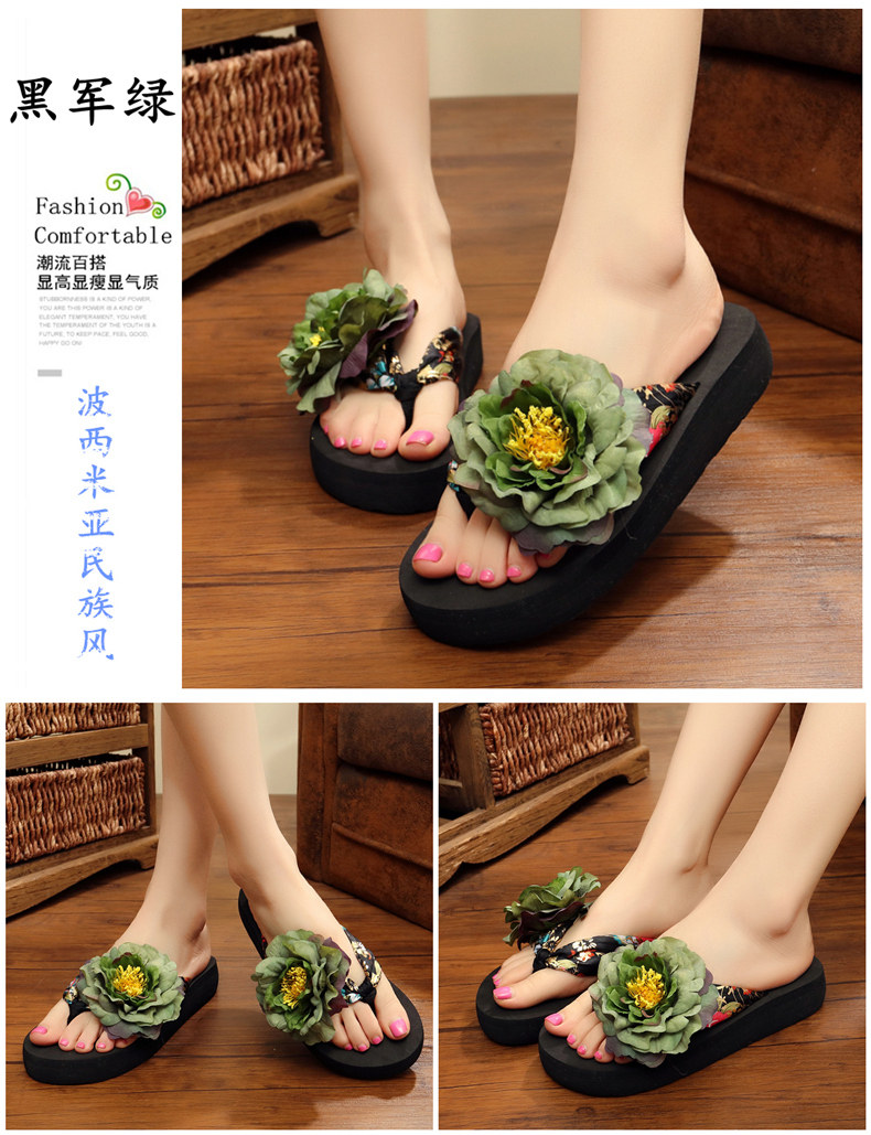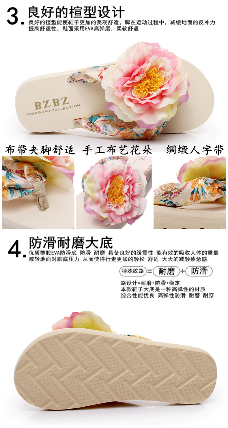 新款绸缎外穿厚底凉拖鞋女夏季韩版坡跟人字拖时尚防滑沙滩鞋