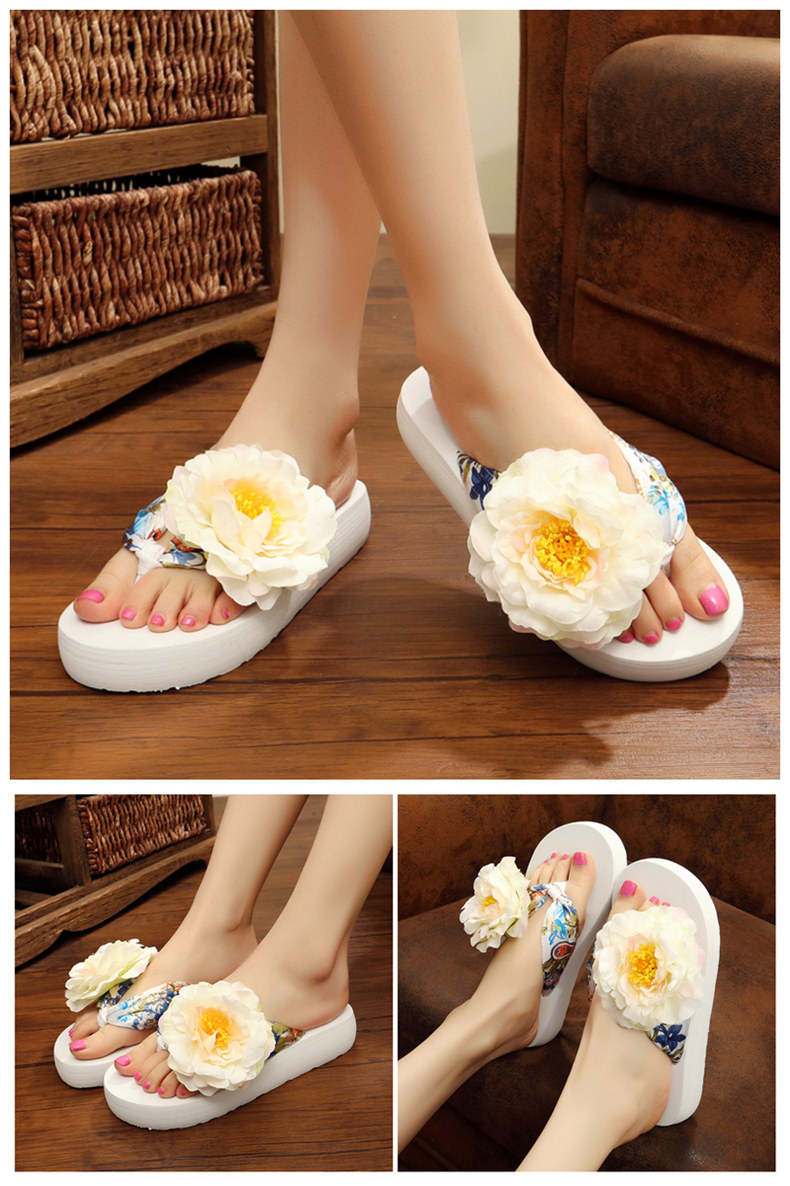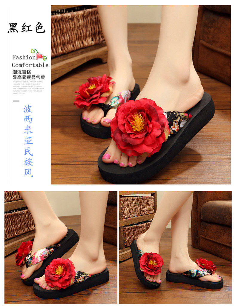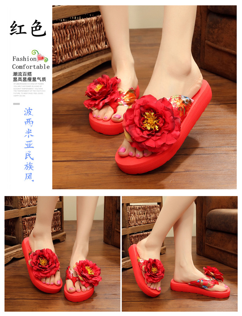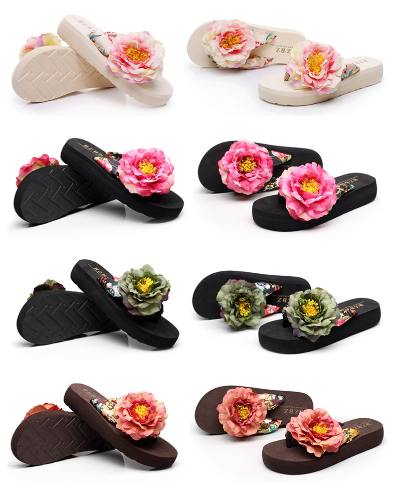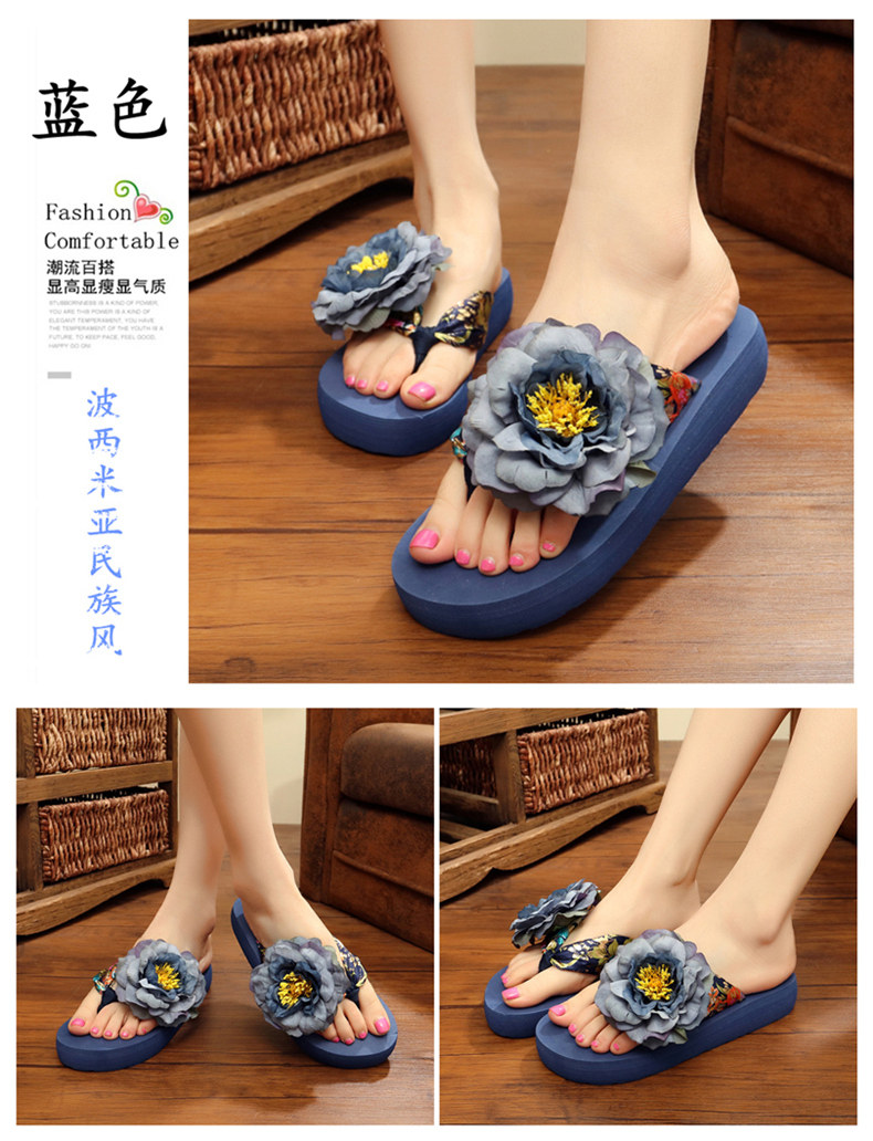 新款绸缎外穿厚底凉拖鞋女夏季韩版坡跟人字拖时尚防滑沙滩鞋