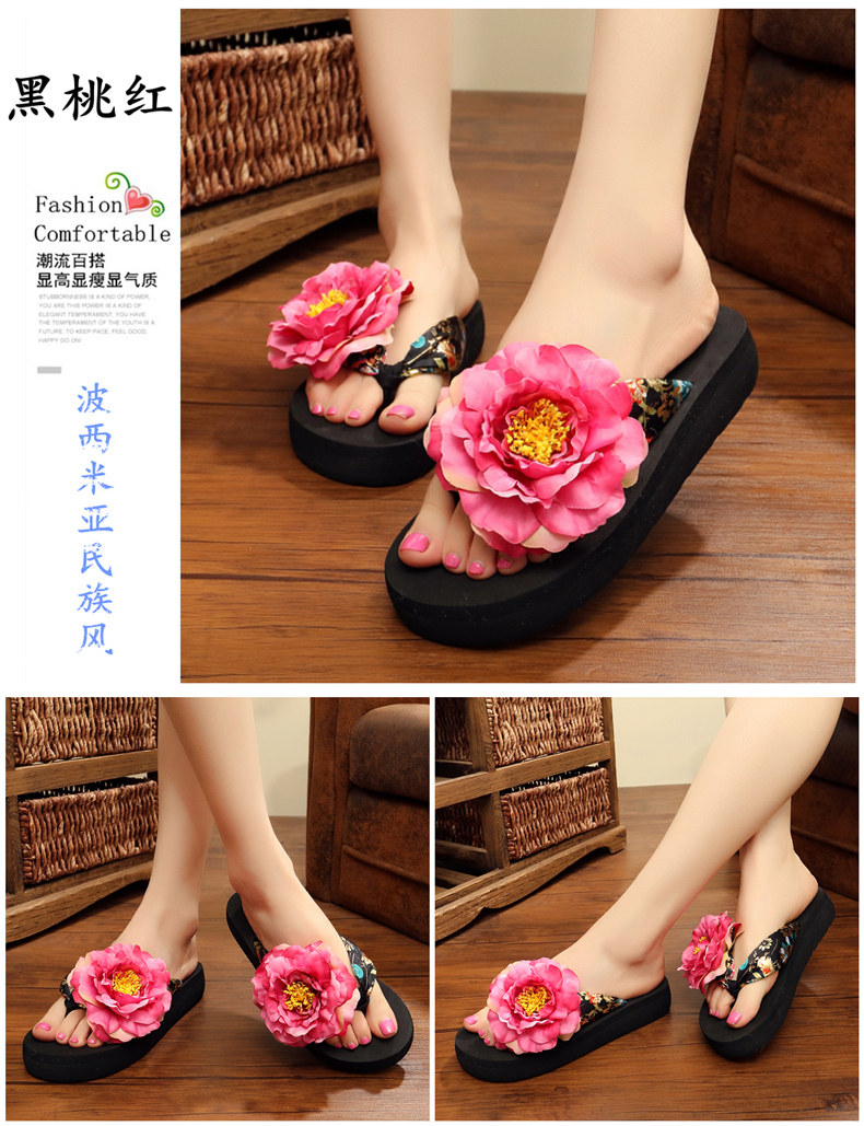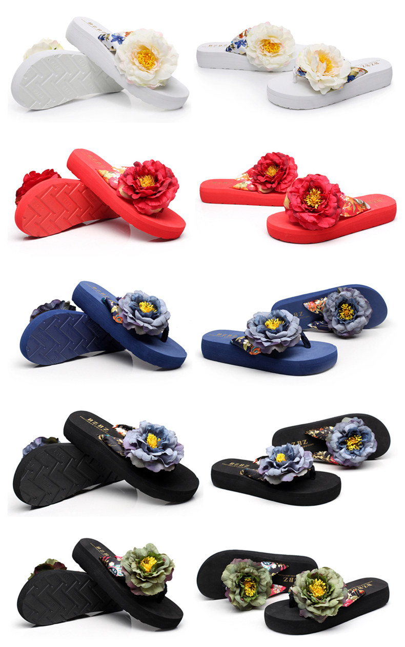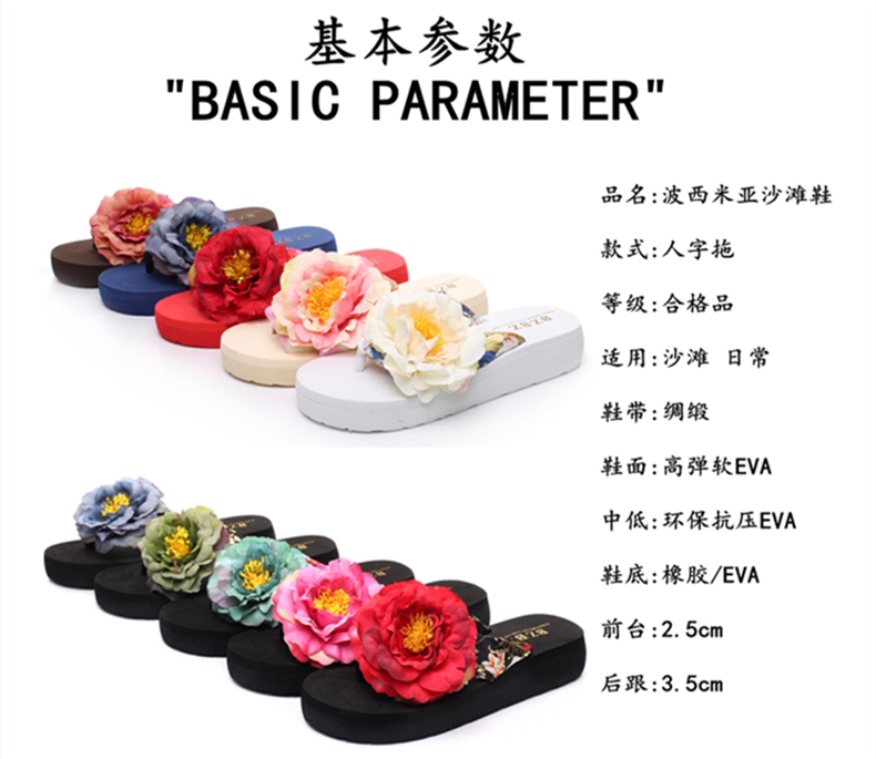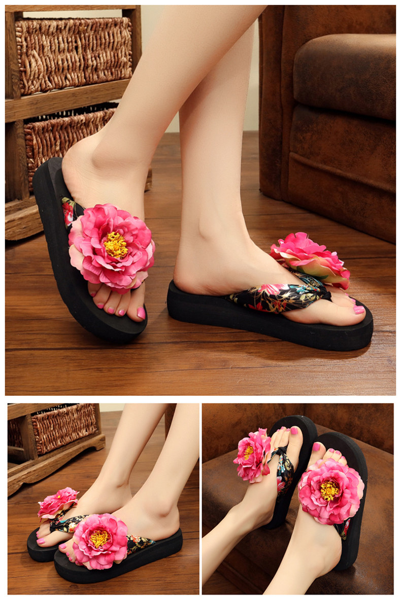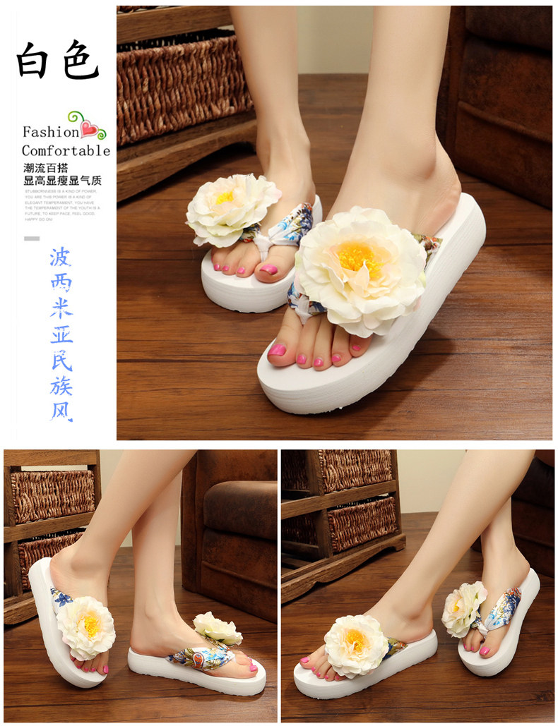 新款绸缎外穿厚底凉拖鞋女夏季韩版坡跟人字拖时尚防滑沙滩鞋