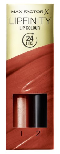 Contains: Step 1 - Paint for Lips (.07 fl oz) and Step 2 - Moisturizing Top Coat (.06 oz). Welcome to Max Factor's Lipfinity. For incredible color that really lasts for 10 hours, the secret is Lipfinity. A revolutionary 2 step system for your lips - long lasting color plus moisture. Apply the color once first thing in the morning and it will last through coffee, lunch and afternoon tea; you really can forget all about it! Lipfinity contains Perma Tone, semi-permanent color. Made in Ireland.Feature