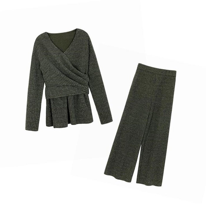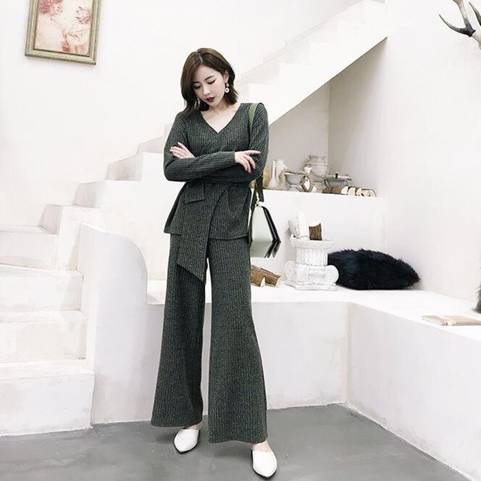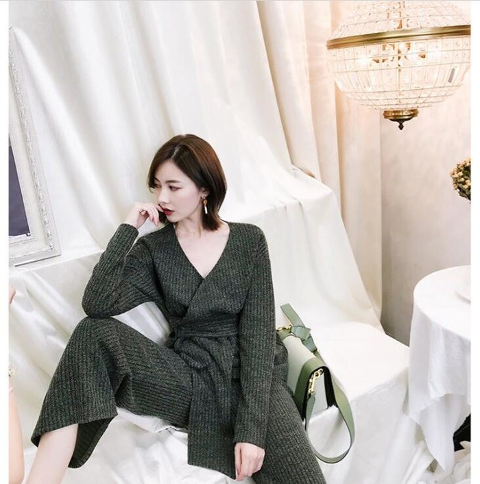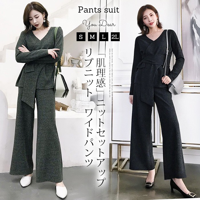 ■キーワード:ニットセットアップ レディース ニット トップス ロング丈 ニットセーター リブニット ロングニット セーター Vネック 秋 ロングパンツ ワイドパンツ ニットパンツ ガウチョパンツ ロングパンツ 2点セットアップ 結婚式 パンツドレス 上下セット フォーマル 無地 体型カバー キレイめ カジュアル 上品 着痩せ おしゃれ ママ 20代 30代 40代 50代 ファション★素材:ポリエステル ★生地:普通 ★セット内容:トップス+パンツ ★カラー:緑 ダークグレー★サイズ(cm)S:バスト110 肩幅59 袖丈49.7 トップス丈59.4 ウエスト68 ヒップ94 パンツ丈96M:バスト114 肩幅60.5 袖丈50.5 トップス丈61 ウエスト72 ヒップ98 パンツ丈97L:バスト118 肩幅62 袖丈51.3 トップス丈62.4 ウエスト76 ヒップ102 パンツ丈98XL:バスト122 肩幅63.5 袖丈52.1 トップス丈63 ウエスト80 ヒップ106 パンツ丈99