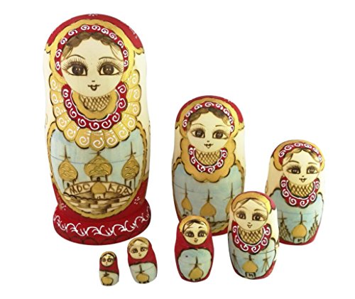 -. Feature : The pattern is hand-painted.Red and Gold little girl and Moscow Kremlin in the middle / Contains 7 dolls with decreasing size placed one inside the other to appear as one / Kids will love to play with it,enjoy the fun of taking them apart and reassembling / It combines tradition and modern,classical and innovative,unique decoration to home / Russian nesting dolls is full of special meanings,it's a perfect gift to give anyone