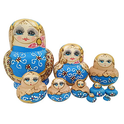 -. Feature : Russian Nesting Dolls Set, Set of 10, made of basswood, excellent quality / Hand Painted with Environmentally friendly paints,nice details and nice craft,easy to open / The height of the largest doll is 15cm/5.9" tall, The height of the smallest doll is 0.9cm/0.35" tall / Funny toy for your kids to play with,your kids will feel happy and enjoy playing with these cute toys / Package included: Set of 10 Girl Russian Nesting Dolls