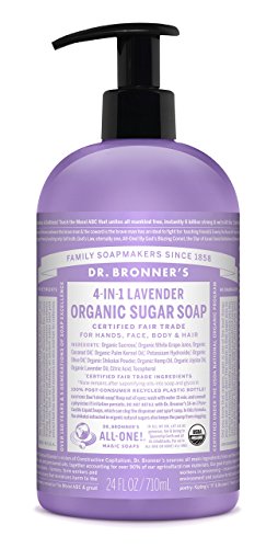 Dr. Bronner’s Organic Lavender Sugar Soap. 4-in-1 Organic Pump Soap for Home and Body (24 oz)