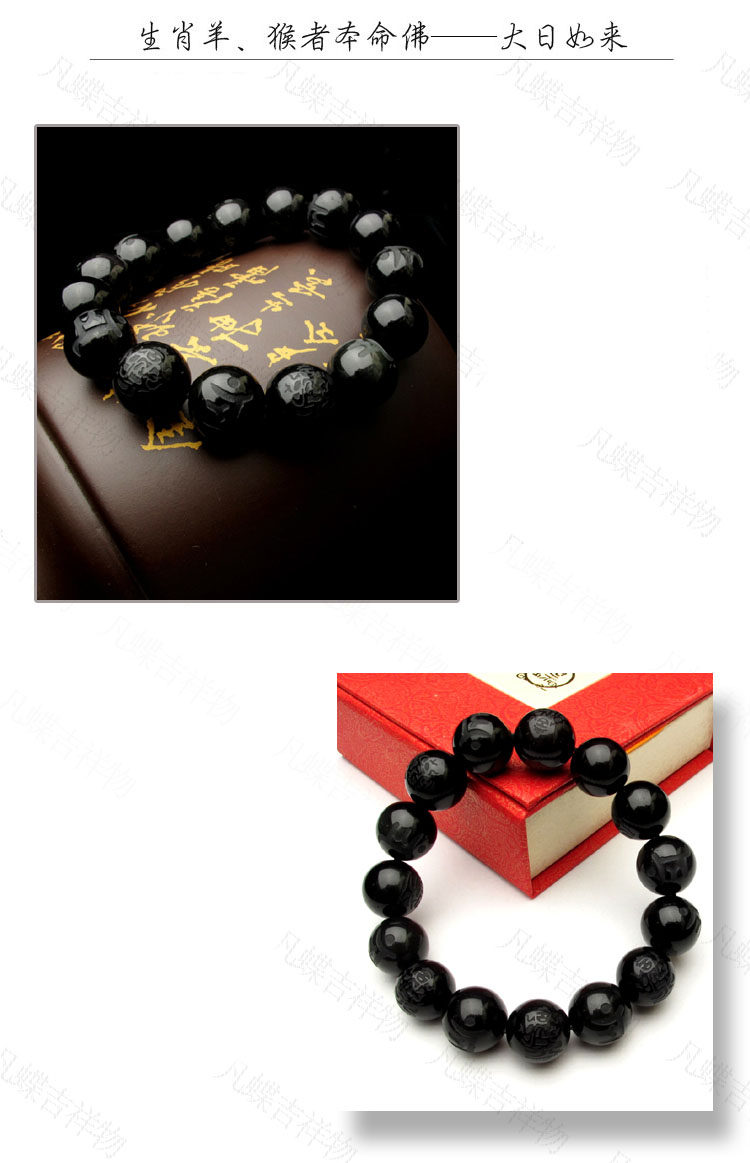 开光 天然黑曜石本命佛手链 大日如来菩萨手链 生肖属羊猴守护神