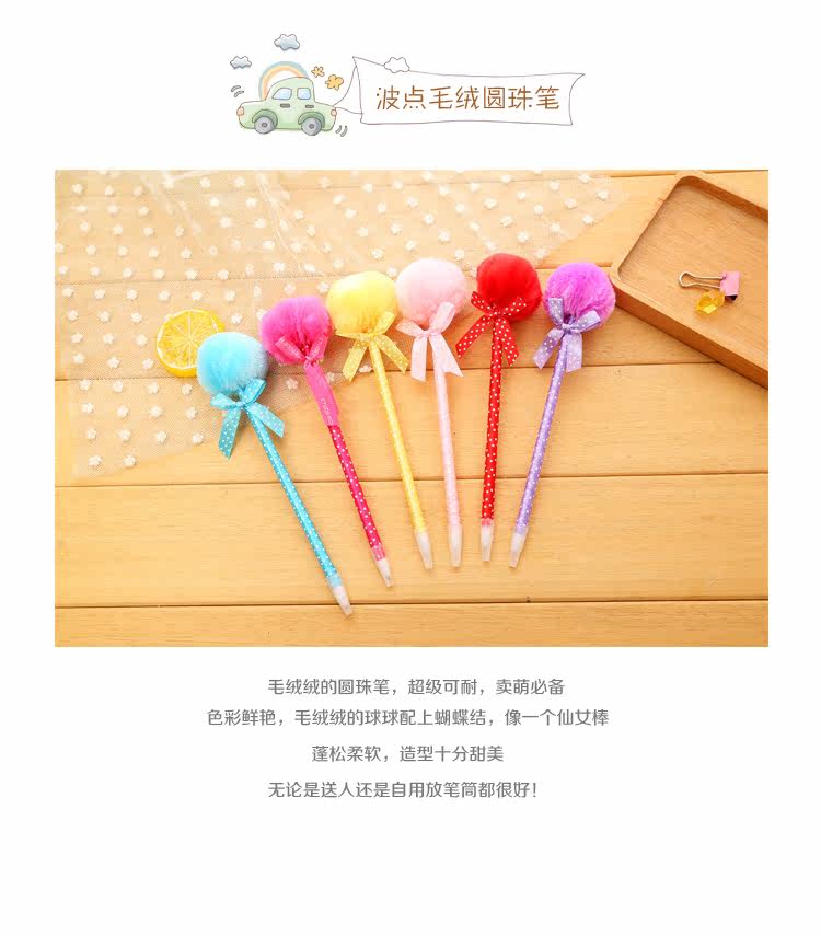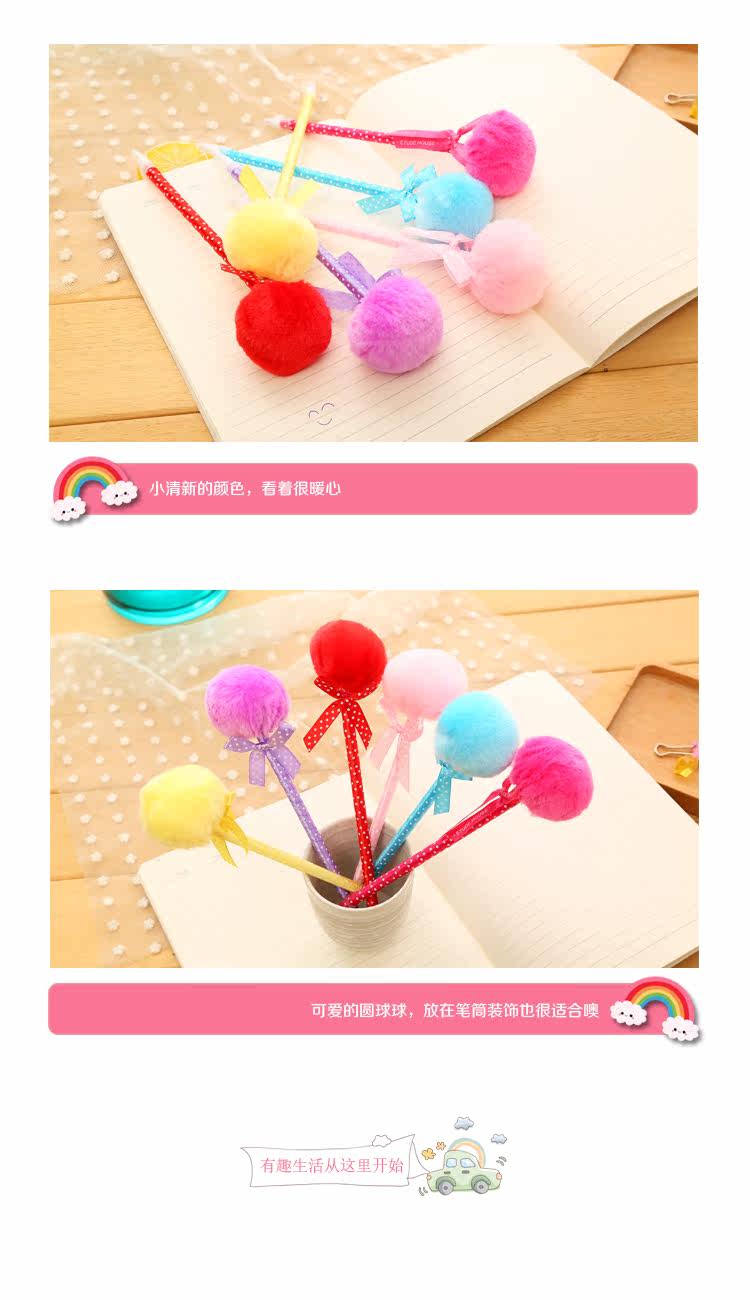 球型毛绒笔圆珠笔创意卡通毛球笔写字笔球型毛绒笔学习文具用品