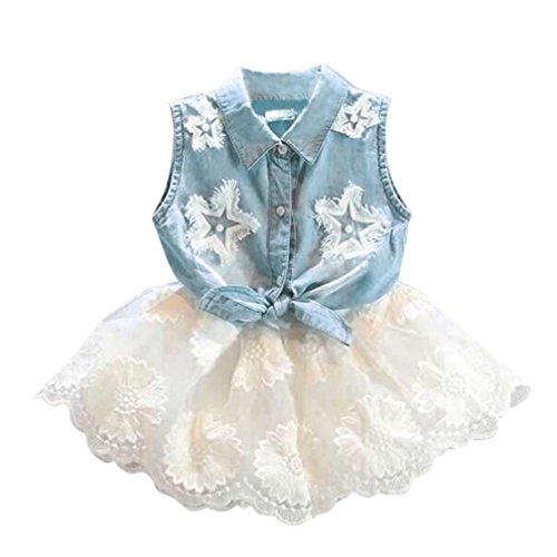 -. Title : Allywit Toddler Baby Kids Girls Outfit Clothes Denim Vest Tops+White Chiffon Skirt 1Set