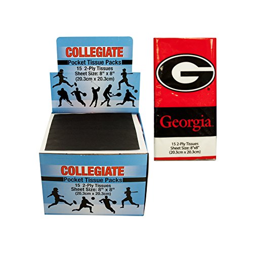 Studio : Kole Imports Publisher : Kole Imports Binding : Kitchen Product Description Perfect for packing along and supporting your favorite team, these collegiate licensed Georgia Bulldogs Pocket Tissue Packs feature small resalable packs with colorful team artwork. Each pack measures approximately 4" x 1" x 2" and contains 15 2-ply plain white tissues. Sheet size: 8" x 8". Countertop display comes with 48 pieces. 0
