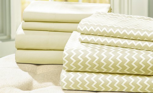 -. Feature : 100% Polyester. Brushed yarns give a soft hand; feels like a high thread count / Elegant Chevron P.R.Int design with matching solid sheet set / 2 flat sheets - 1 solid & 1 P.R.Int, 2 fitted sheets - 1 solid & 1 P.R.Int, 4 standard pillowcases - 2 solids & 2 P.R.Ints / Machine washable