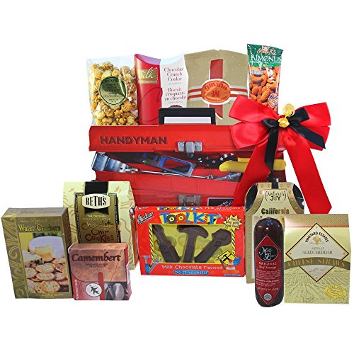 -. Feature : Celebrate the man that can DO EVERYTHING! / We fill this tool box gift box with gourmet goodies and treats to satisfy all his savory, sweet and crunchy cravings. / It's a great way to show your thanks, and appreciate those guys who are always there to fix things for you / Each gift is crafted with attention, shrink wrapped and tied with a bow for presentation, ready for gift giving. / To include a personalized gift message or to notify your recipient who purchased this thoughtful gift, you must select GIFT during checkout.