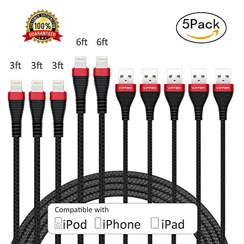 -. Title : iPhone Charger, VIPFAN lightning Cable,5 Pack 3X3ft 2X6ft Nylon Braided 8 Pin certify Lightning to USB charging Cable Cord powerline for iPhone 7 7 Plus 6 6S 6 Plus 5S SE iPod iPad Mini Air Pro