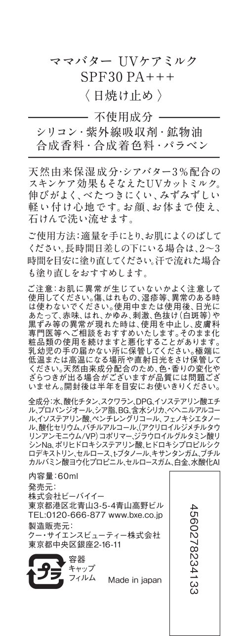 UV-cut milk which also has a skin-care effect of 3% naturally derived moisturizing ingredient · shea butter.