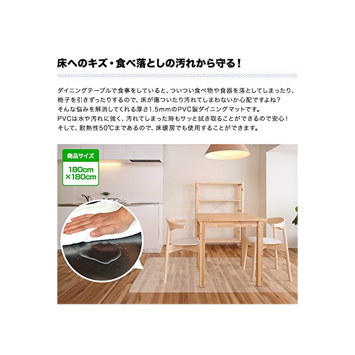 원본상품명: ottostyle.jp 床を保護するダイニングマット クリア 厚さ1.5mm フロ?リングや?のキズ防止に 食べこぼし キッチン 透明 食卓 料理 テ?ブル 撥水 カット可能