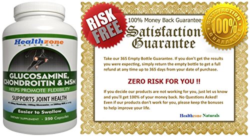 -. Feature : Want your life back? Our advanced Triple Strength formula gives you a maximum dose of Glucosamine, Chondroitin & MSM to help lubricate your joints and get you moving around easier with less discomfort, exercising and going up and down stairs with less if not any pain. / Most users reported zero negative side effects. No after taste. No upset stomach. Love it being a natural pain solution. In fact, even though there are 5 pills per dose, lots of people prefer our easier to swallow capsules over the other sharp edged, choking causing tablets. / Love to run? Run longer & feel better. Lift Weights? Lift more weight with less pain than before. Cross Fit? Increase your intensity and get more out of your workout. Play Sports? Make those plays you've missed in the past. Improve your performance and prepare for compliments from your team mates. / Pain from being a little over weight? Lubricate your aching joints so you'll be able to get moving again. Improve flexibility, reduce morning stiffness. Safer than dangerous and addictive pain medications or even NSAIDs. / When you order today, you're protected by our 365 Day Empty Bottle 100% Money Back Guarantee. No Questions Asked with world class customer service.