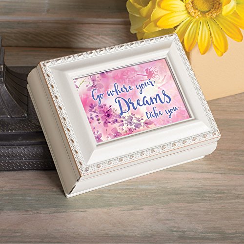 Go Where Your Dreams Take You Ivory and Gold Trim Tiny Square Keepsake Box