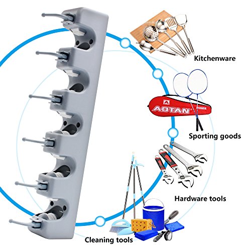 - Space saver - This tool rack storage tidies up your broom, mop, rakes, cleaning tools, sport equipment and any home gadget, the retractable hooks can store many small items like keys, towels, umbrella, brushes and more. Perfect organizer for kitchen, bathroom, closet, offices, garage, garden, laundry, basement, yard and everywhere you want. So you don't have to worry about the mess or the hassle.