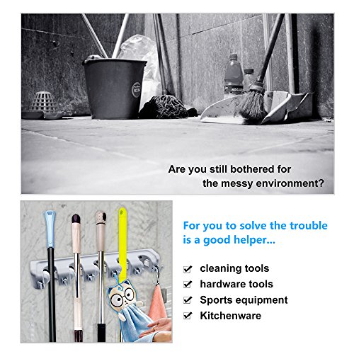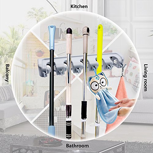 - Special design - There are 5 retractable ball slots and 6 hooks that can be pulled down for use or pushed back up if not needed, so you can keep your mops, brooms neatly arranged.