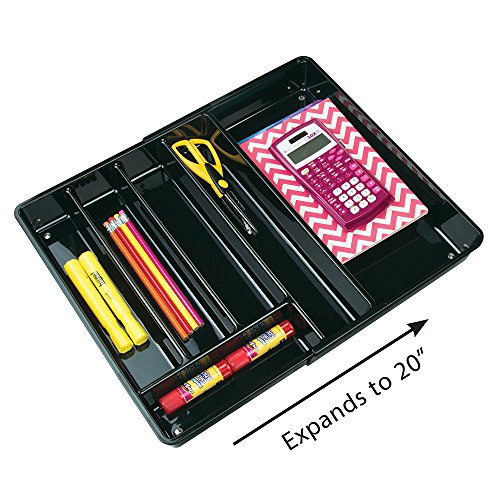 mDesign Expandable Office Drawer Organizer for Pens, Pencils, Scissors, Sharpies - Black