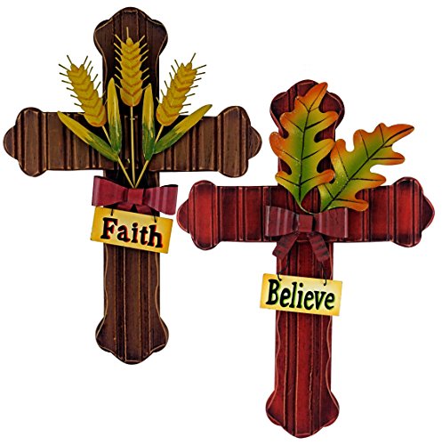 Fall Harvest Themed Hanging Wall Cross Set of 2