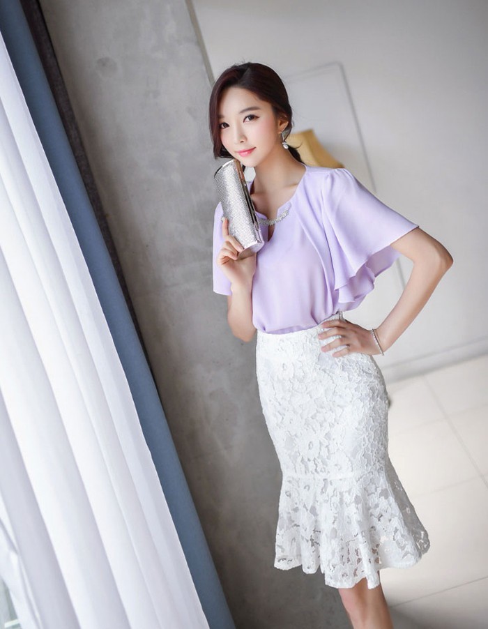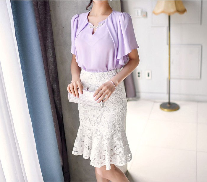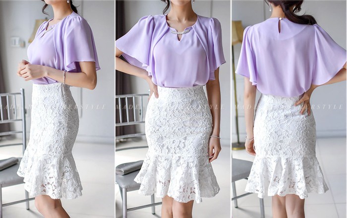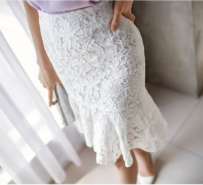 商品名:ペンシルスカート ミニ丈 マーメイド レース配色