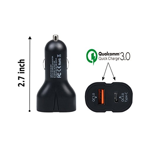 - 2-PORT USB CAR CHARGER with Certified Quick Charge 3.0: Car charger with Two port (both support Qualcomm Quick Charge 3.0), one Type A and other Type C slots, equipped with 36 watt output . With both Type C and Type A USB slots you can charge almost any electronic device you need, such as: notebook, newest & old smartphones, tablets, bluetooth earphone, cameras, etc. Choose to be prepared for any situation.
