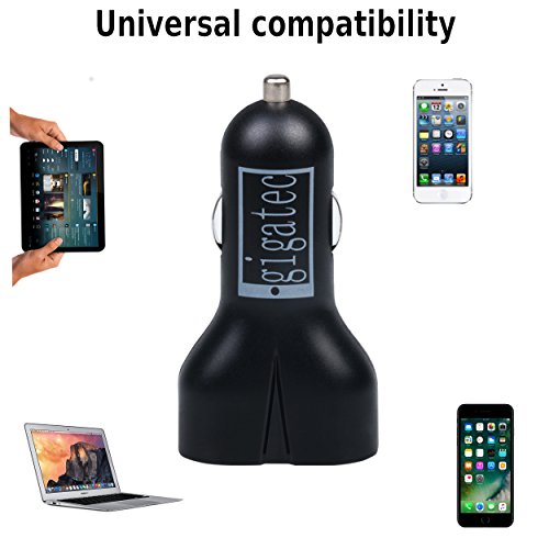 Gigatec Quick Charge 3.0 Dual Car Charger 36W++ with fast USB cable included/ For fast charge: Samsung Galaxy S6/S7/S8, Iphone 6/7+, Ipad, Pixel, LG, HTC, Macbook