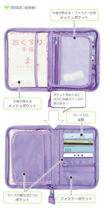様々な収納がついたマルチケース☆約11×15cmの母子手帳を収納できます。持ち運びに便利なストラップ付き♪