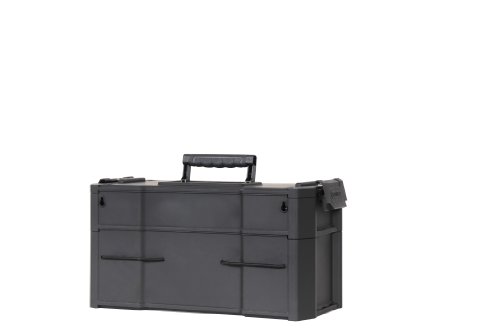 -. Feature : Modular aufgebaute Rollende Werkstatt (Rolling Workshop) aus robustem Kunststoff / Drei entnehmbare, tragbare Werkzeugboxen mit Schnellverschluss / Obere Einheit: gräumige, abnehmbare Werkzeugbox mit Schublade und Schnellverschluss / Mittlere Einheit: zwei Schubladen (eine flache und eine tiefe Schublade - mit entnehmbaren Teilern) / Untere Einheit: mit zwei Fächern an der Rückseite zur Aufbewahrung größerer Werkzeuge (Sägen, Wasserwaagen)