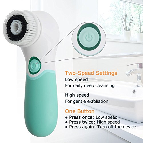 - 3 Replacement Brush Heads for most skins. Soft brush (daily cleaning), Exfoliating brush (deep cleaning), Silicone brush (sensitive skin cleaning). 2-speed settings and 360° rotary brush head to ensures thorough cleaning, soft skin-friendly bristles without irritations, suitabe for all skins includes normal, dry, oily, sensitive