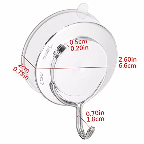 - Installation: Put the hook on the smooth surface and rotate the suction follow the “Close” indicate to lock the hook. It is reusable. (Please install the hook at the room temperature due to the cold weather, or you can put it in warm water to soften the suction cup.)
