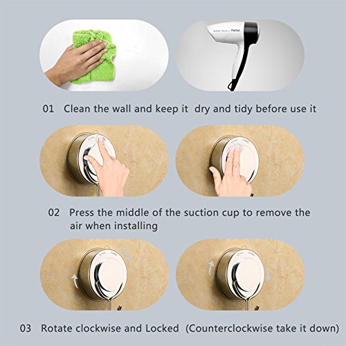 - Clear the wall and ensure the wall dry, and then Press the hook on the wall, clockwise turning to lock it, it will stick to the wall firmly.