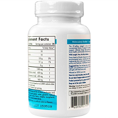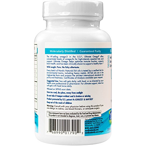 -. Feature : THE BENEFITS OF OMEGA-3: Omega-3s are fatty acids found in fish oil. These essential fats include EPA (Eicosapentaenoic Acid) and DHA (Docosahexaenoic Acid) and have been shown to support overall wellness, including heart, brain, joint, eye, and mood health. / AN ULTIMATE FORMULA: Nordic Naturals Ultimate Omega contains more than 1200mg of omega-3s. A serving of Ultimate Omega meets the daily recommended dose sested by the American Heart Association and has been shown to support a healthy heart. Each great-tasting soft gel delivers concentrated EPA and DHA in its most absorbable form to support your health and wellness. / OVERALL HEALTH: Omega-3s have been shown to promote healthy immune function and metabolism, and to support healthy blood sugar levels. They also support the body's ability to respond to stress in a healthy way. Many concentrated fish oils on the market today are in the ethyl ester molecular form, whereas Nordic Naturals' formulas-including Ultimate Omega-are produced in true triglyceride form to ensure optimal absorption and results. / CAUGHT IN THE WILD: Every batch of Nordic Naturals fish oil is made from wild-caught, sustainably sourced fish. The oils are tested to ensure that they are free of environmental toxins, including heavy metals, which are often associated with fish oil. Whereas most concentrated fish oils on the market today are in the ethyl ester molecular form-a synthetic fat-all Nordic Naturals' formulas are produced in true triglyceride form to ensure optimal absorption and results. / FROM BOAT, TO BOTTLE, TO YOU: Nordic Naturals has been leading the fish oil industry for over 20 years. Founder Joar Opheim founded the company after he came to live in California and was unable to find the quality fish oil he relied on. Family owned, Nordic Naturals continues to innovate within the fish oil industry, proof that when values are aligned with action, great things can happen - a commitment that remains absolute.