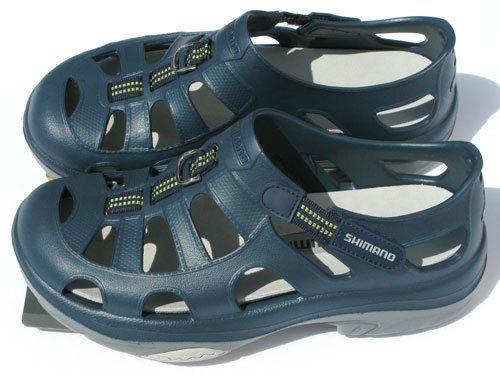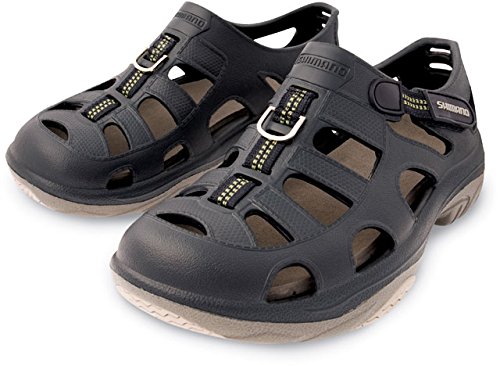 Product Description Shimano's latest introduction to footwear is the multiple application Evair Marine/Fishing shoes featuring ultra lightweight EVA material. After a day of fishing or any other marine activity, you will feel as if you were wearing nothing on your feet during hot summer days. 0