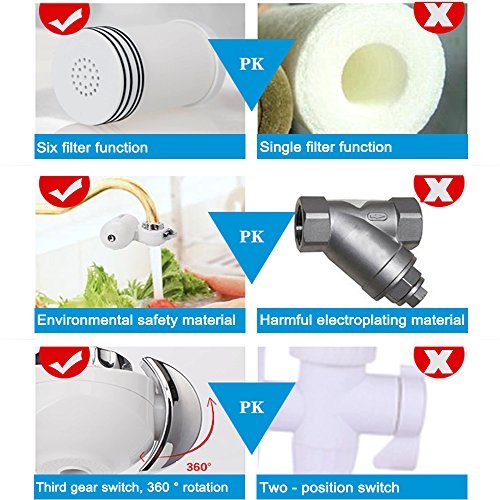 Faucet Water Filter, EgoEra Kitchen Faucet Water Filter Tap Switch Kit, 6 Stages Tap Water Purifier Filter with Washable Ceramics Filter Core