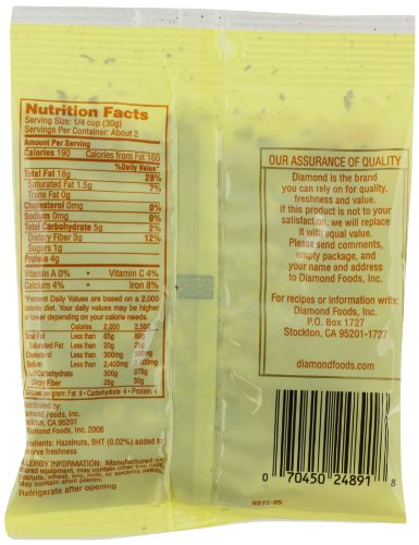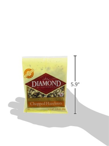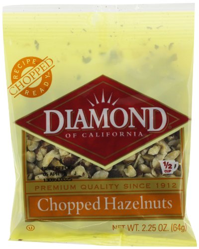 Pack of 12, 2.25-oz bags (1/2 cup) of Diamond of California Chopped Hazelnuts^100% Oregon Grown^Diamond of California has offered fresh, high quality and great tasting nuts for over a 100 years^Unseasoned and ready for baking, cooking, snacking and using as a topping^Kosher Certified