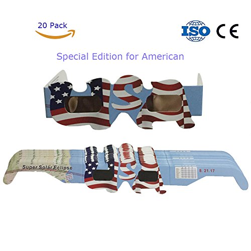 Solar Eclipse Glasses CE and ISO Certified - Safe Solar Viewing - Viewer and Filter - Eye Protection (20 Pack - USA)