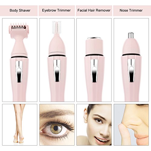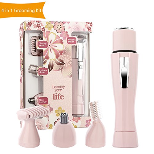 Halcent Cordless Multi Grooming Kit 4 in 1 Ladies Electric Shaver Hair Removal Tool with Eyebrow Trimmer, Hair Remover, Nose Precision Trimmer, Painless...