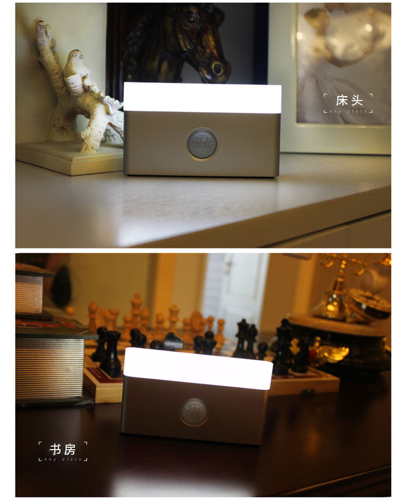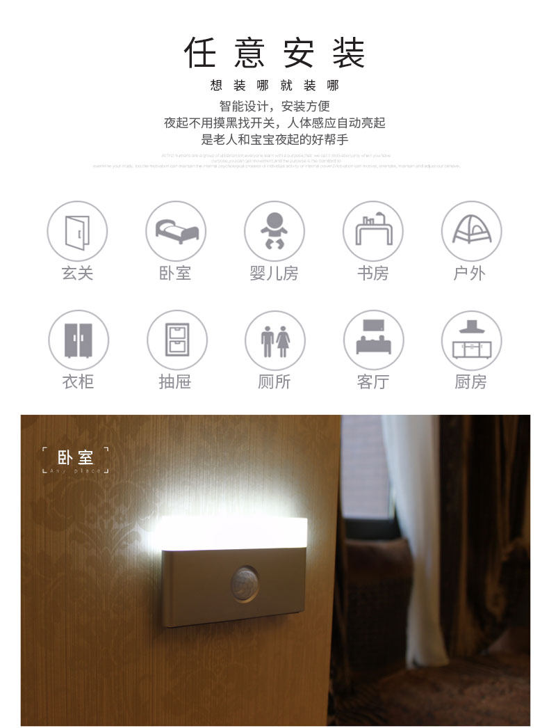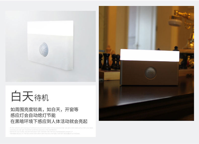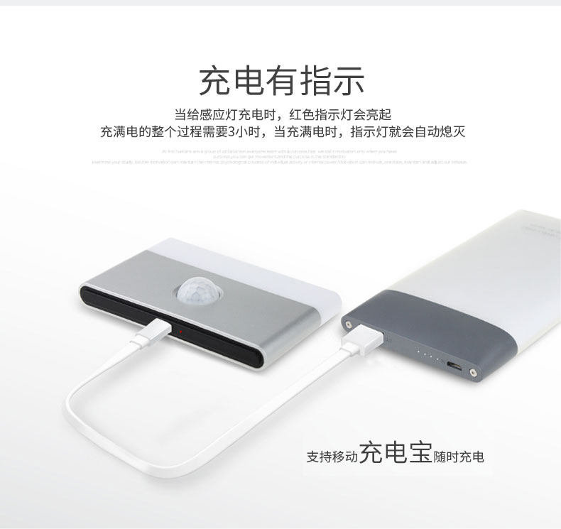 人体感应小夜灯可充电池壁灯不插电抽屉家用卧室床头房间楼梯省电