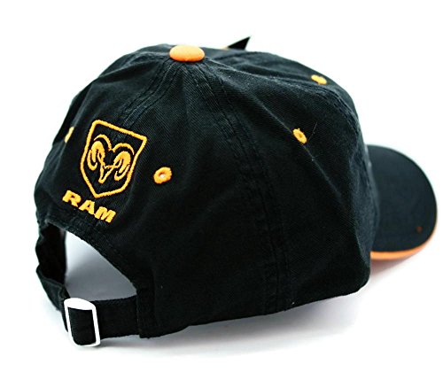 Binding : Apparel Product Description HEMI Ram Truck Officially Licensed Ball Cap - Hat 1/2 sandwich Bill in Black Orange Embroidered HEMI on Crown. Embroidered logo on back f the cap. H3 Headwear 100% Cotton Adjustable buckle strap and embroidered Ram on back. 0