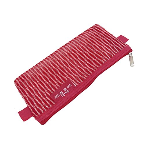 Uxcell Nylon Mesh Zippered School Pen Pencil Bag Holder Pouch, Red