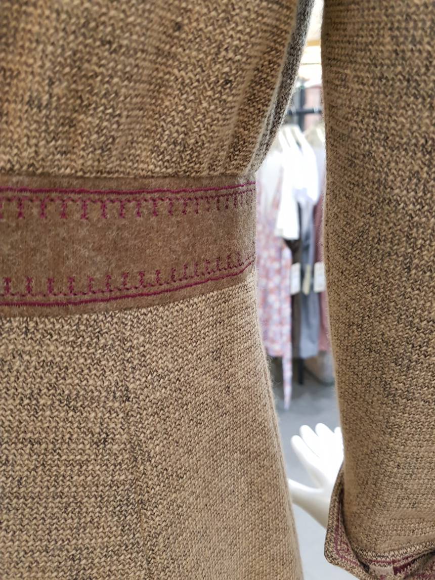 넥 카라, 허리, 소매 부분 모두 포인트를 주고 넥 끈까지 달려있어요