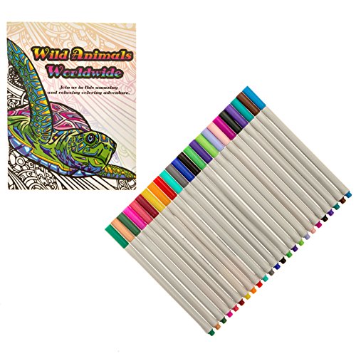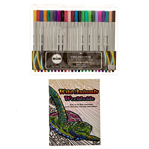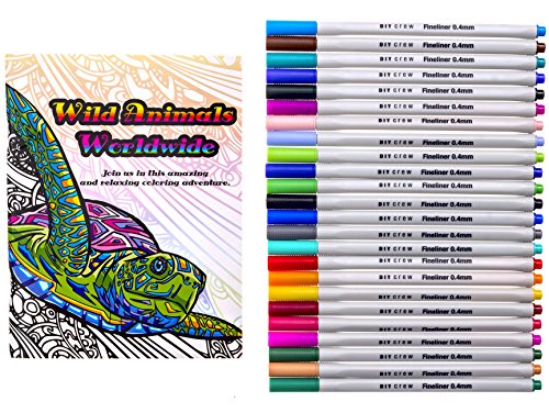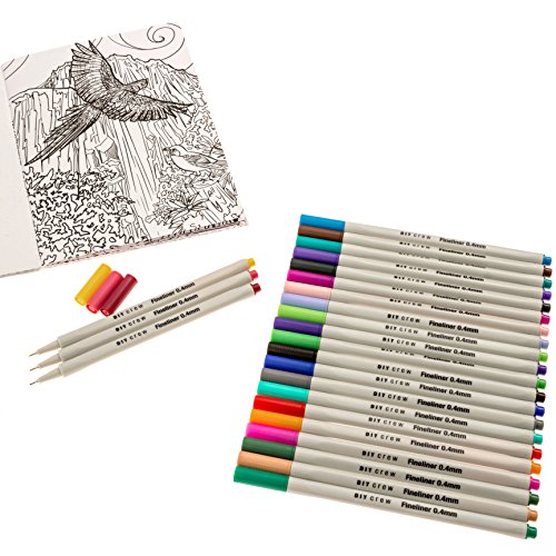 FINELINER PENS SET + EXCLUSIVE ADULT COLORING BOOK. BEAUTIFUL COLORS FINE FELT TIP MARKERS FOR DRAWING, DETAILS, COLORING BOOKS AND MORE.