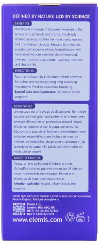 Product DescriptionElemis Spa home De-Stress Massage Oil, Body Soothing 3.4 FL OZ. Calming formula used to combat symptoms of stress and fatigue. Lavender and chamomile work simultaneously to soothe and replenish dry skin.0