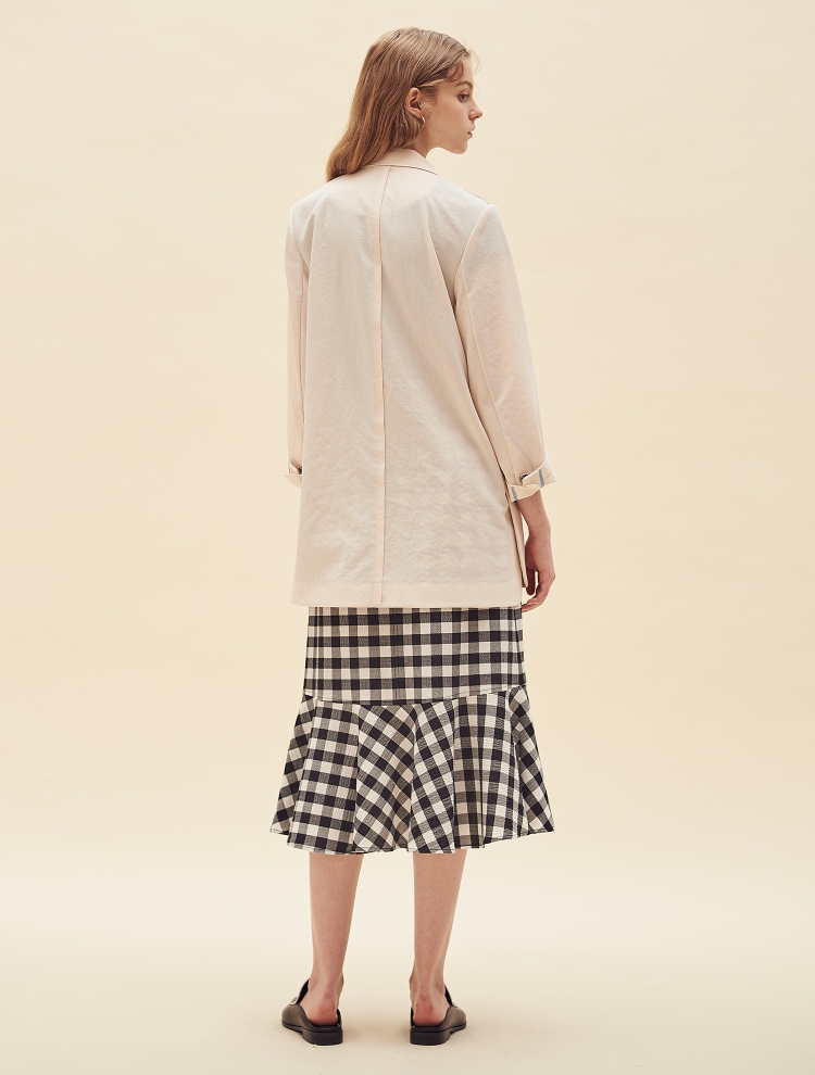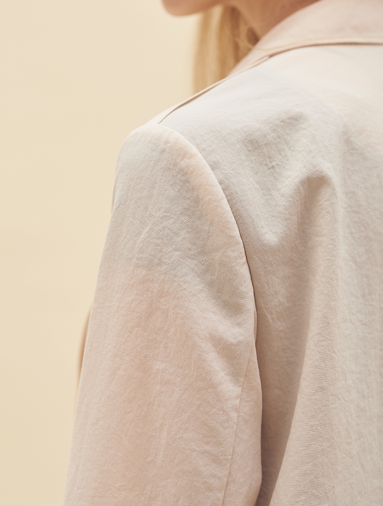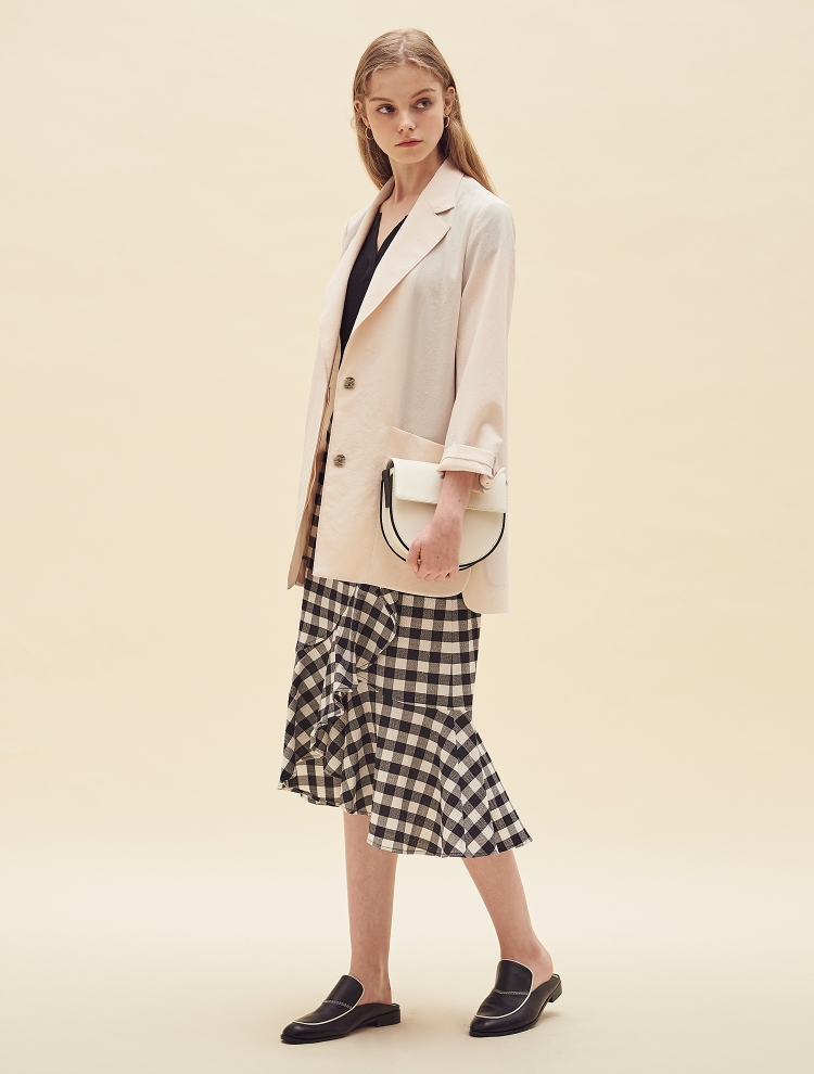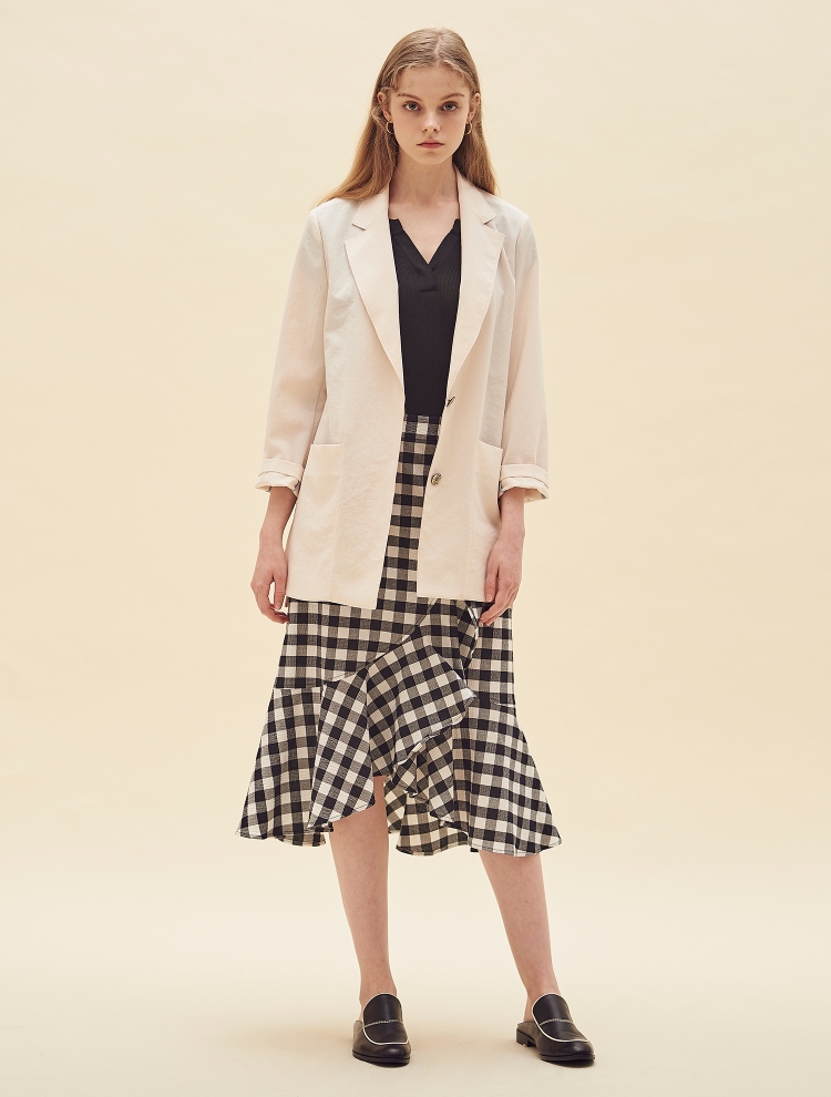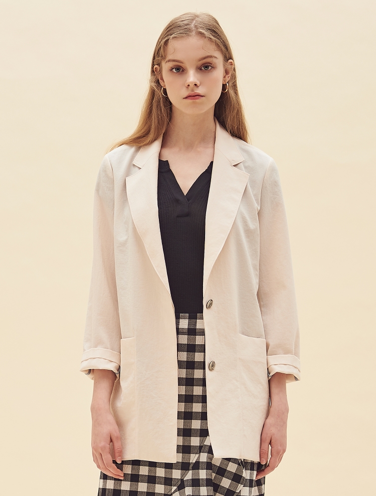 - 힙을 덮는 길이의 H실루엣 싱글 재킷입니다.
