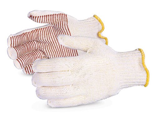 Studio : Superior Glove Works Ltd Publisher : Superior Glove Works Ltd Binding : Misc. Product Description Superior Sure-Grip nitrile palm coated terry glove. Introducing four new styles in our Sure-Grip seamless-knit glove lineup: heat-resistant gloves with grip palms in a choice of regular or cut-resistant styles. Nitrile applied to hot mill gloves marks a huge improvement over PVC because it withstands higher temperatures, and unlike PVC, will not melt or mar surfaces or leave smears on objects behind the way PVC will. We use a unique process to apply nitrile strips across the palms so that grip stays solid for the life of the glove, rather than peeling off with repeated use and laundering. Both styles come in one or both sides coated. The cotton/poly version features loops on the inside to insulate against heat for intermittent contact with hot objects around 400 degree F/ 200 degree C (ASTM level-3) and to provide a smooth exterior surface for applying the nitrile. They offer cool comfort that is safe to wear when handling hot glass or plastic, and can also be used in food service. Washable. Applications include glass foundries, plastics, material handling, automotive, castings, steel mills and fabrication. 0