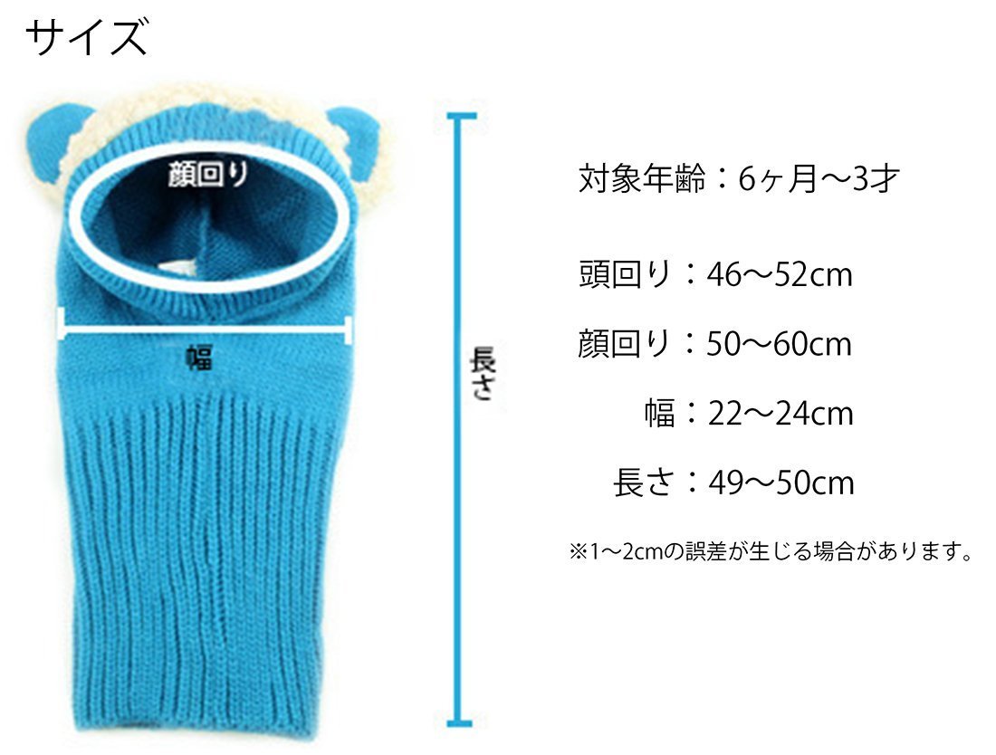 Since it is an integral type of hat and muffler, not only the head of an important child but also the neck and cheeks are warmly guarded ☆