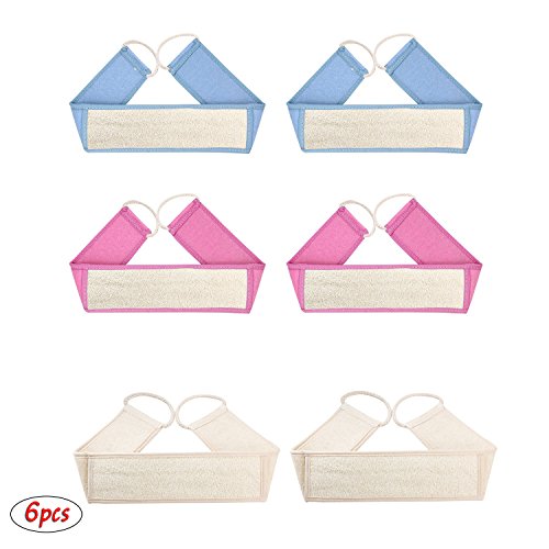 Adecco LLC Exfoliating Loofah Back Scrubber, Natural Luffa Shower Strap for Men and Women, Bath Body Brush, Remove Dead Skin, Massage(6 Pack)