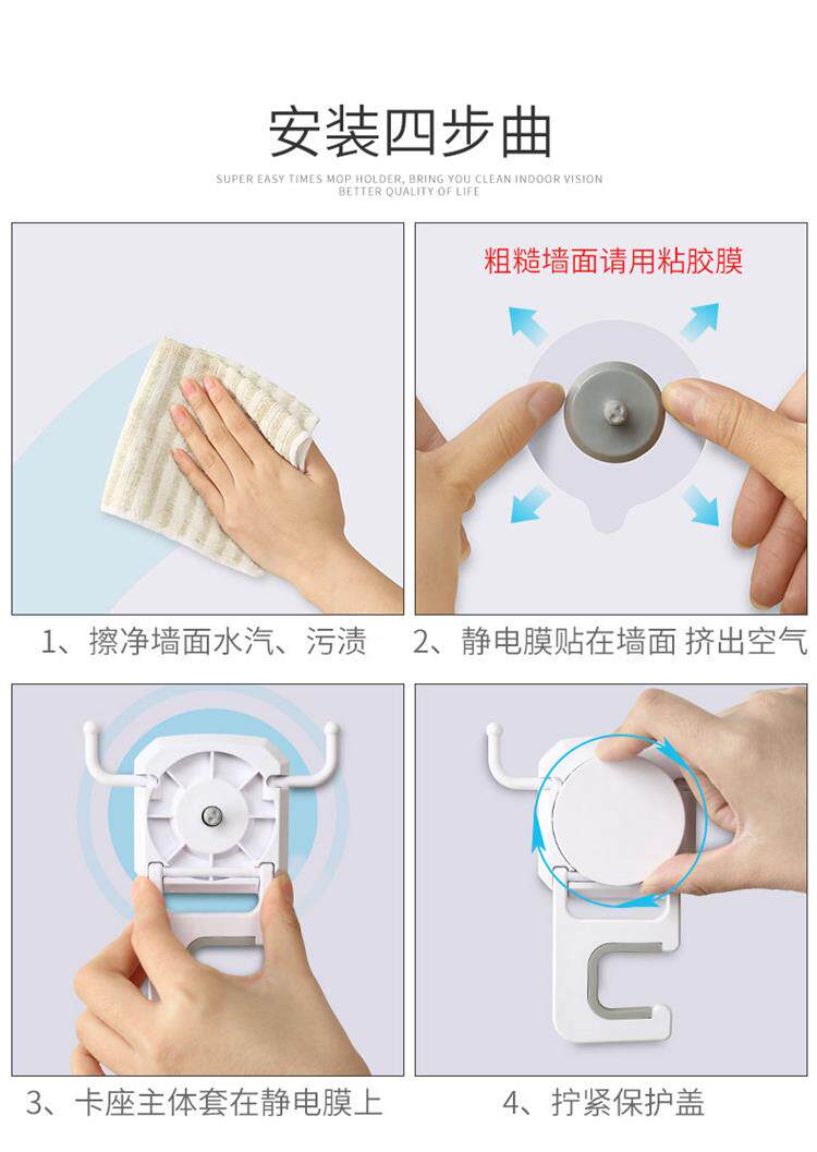 拖把卡座 无痕强力吸盘扫把挂架挂拖把夹粘胶墩布壁挂夹子