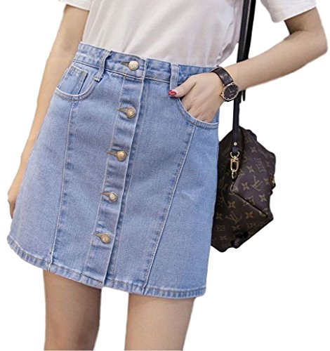 -. Feature : シーズン:春、夏、秋 / サイズ:XS、S、M、L、XL、2XL / カラー:ダークブルー、ライトブルー、ブルー / 生地:綿91%、レーヨン6.9%、その他 / フロントの金ボタンがアクセントのデニムスカート。何にでも合わせ易く、これからの季節に一着は欲しいアイテムです。